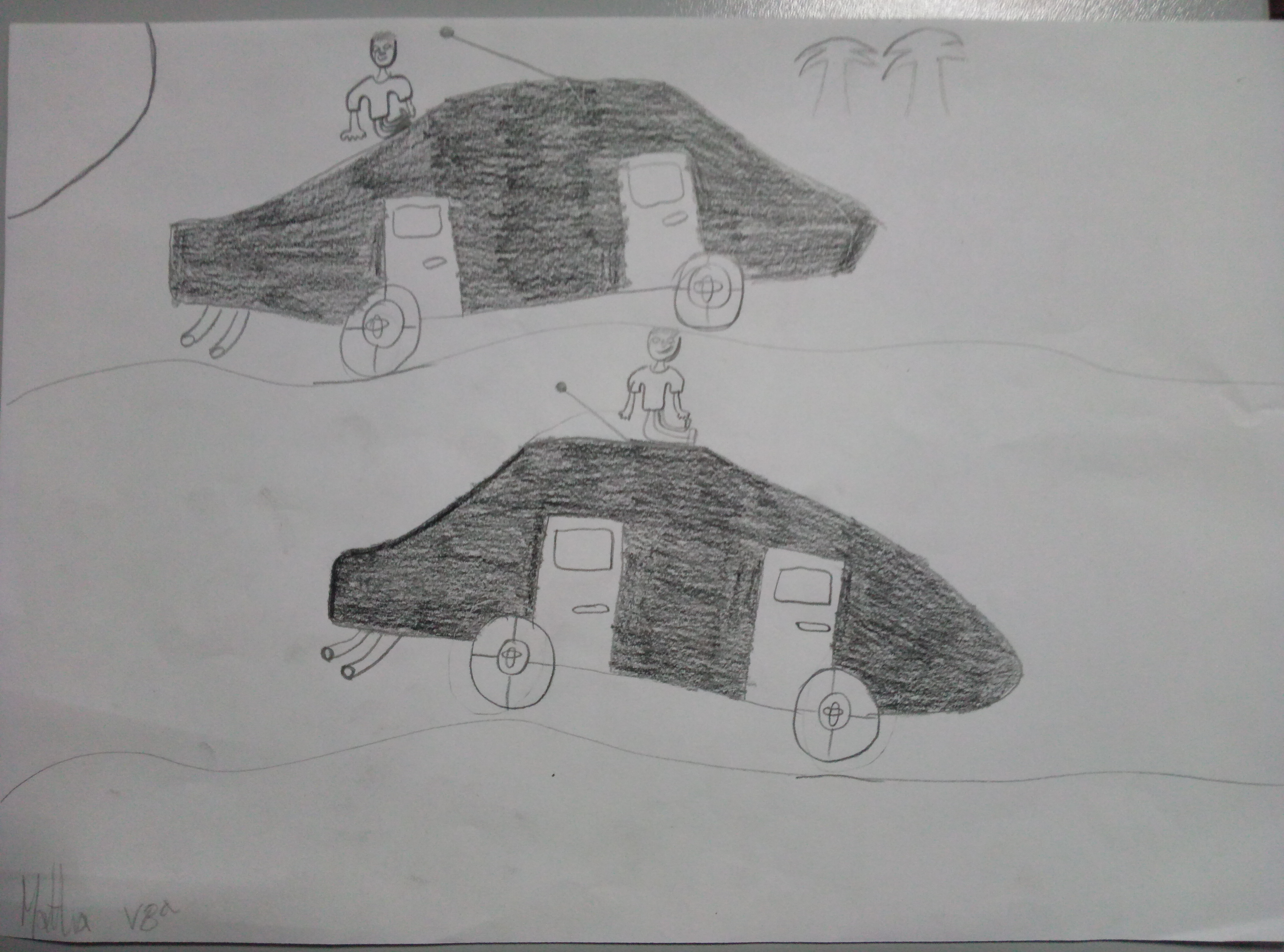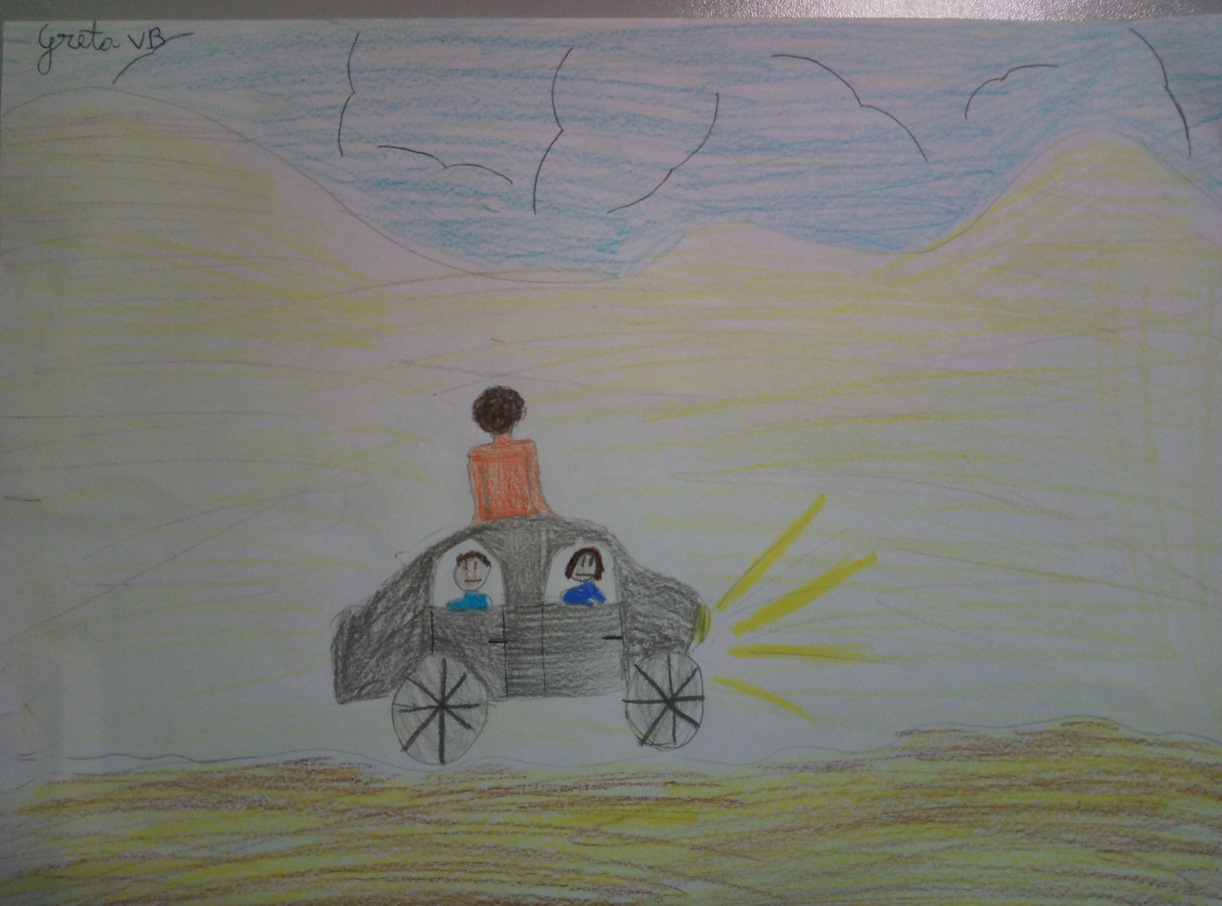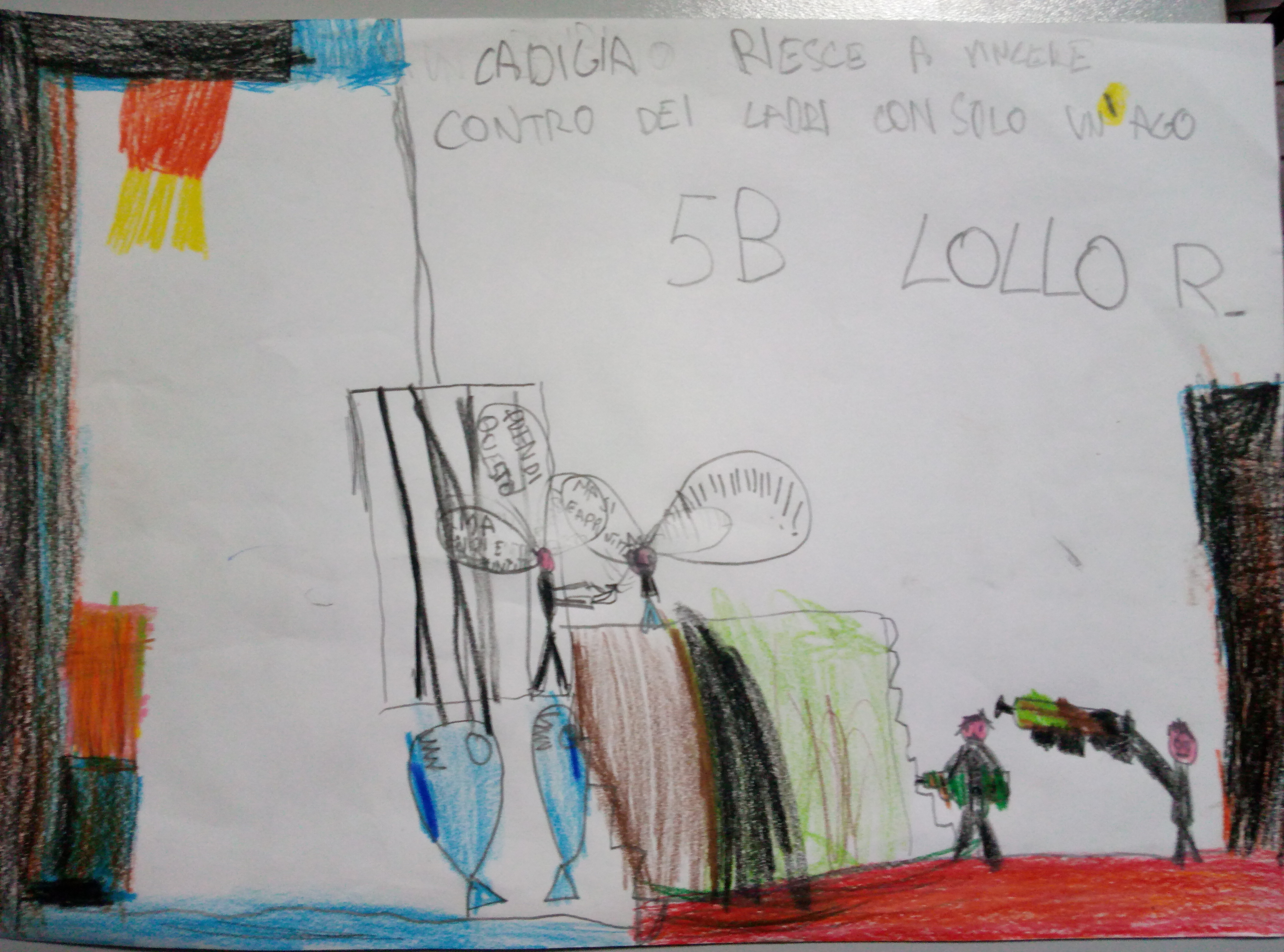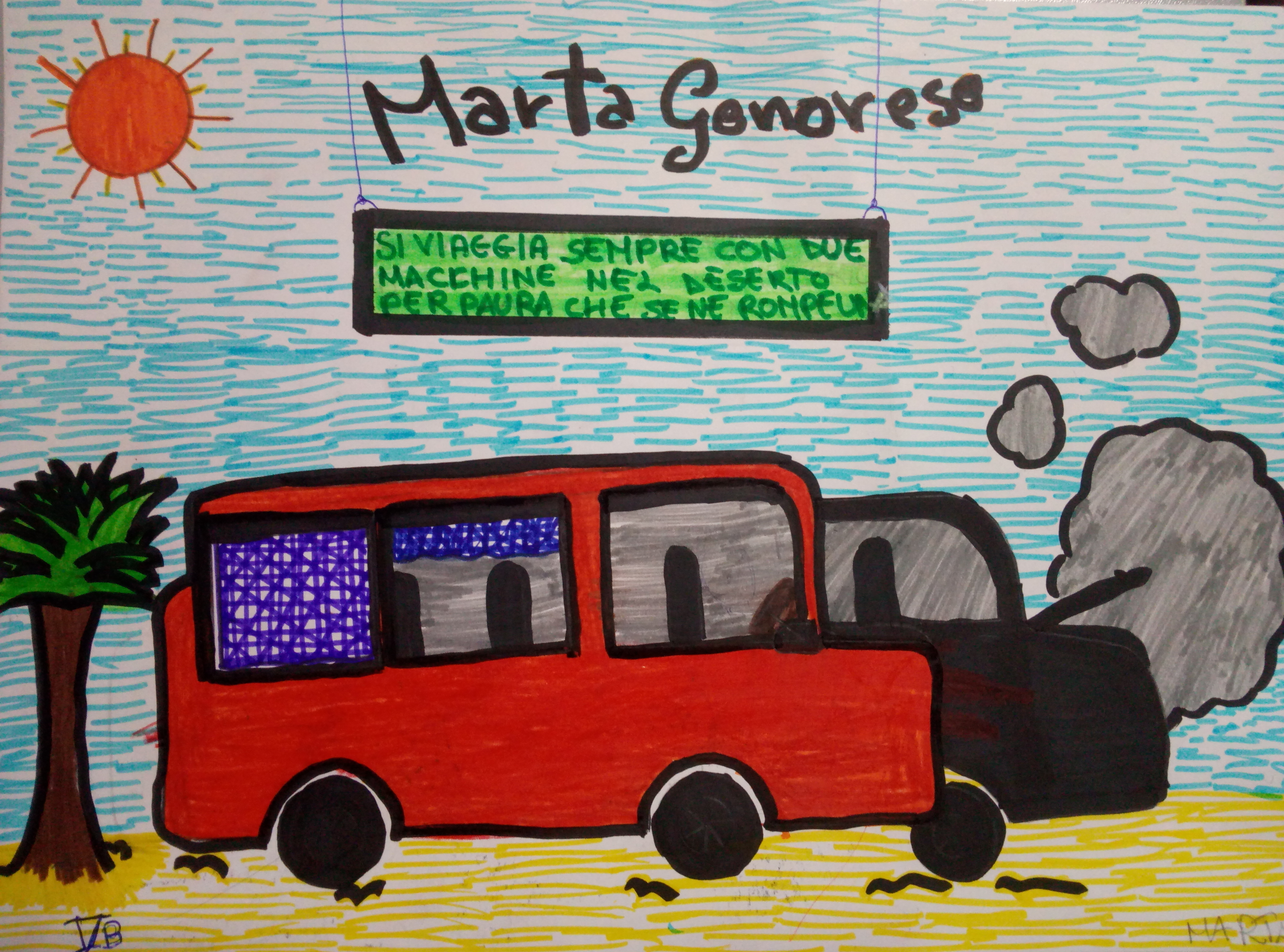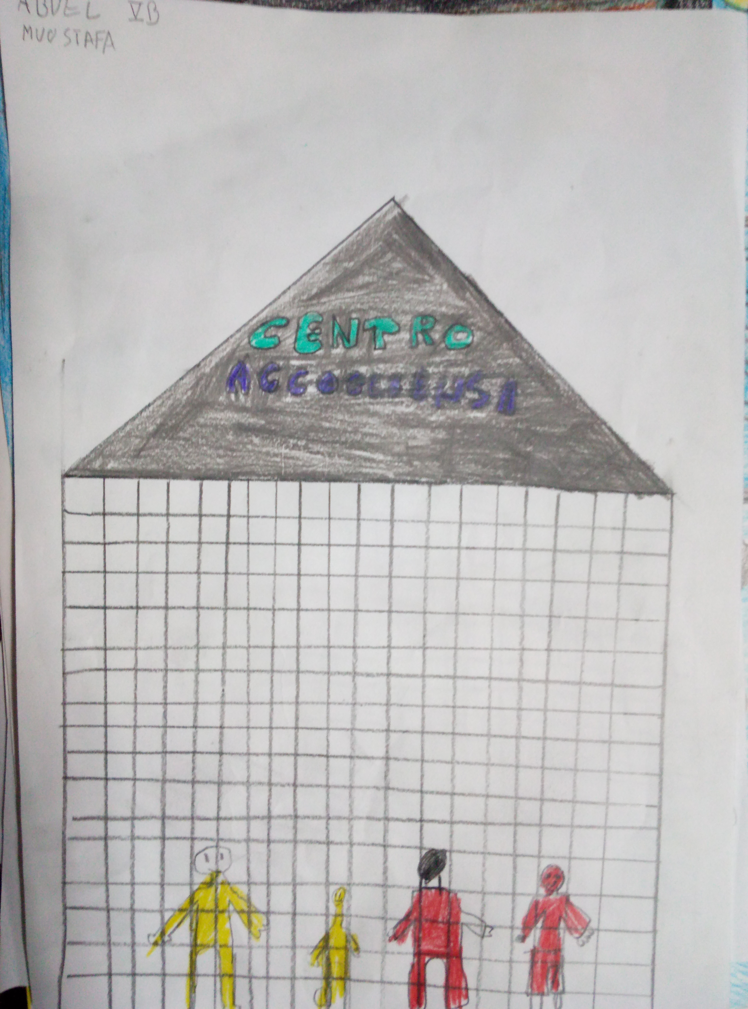 Poi, abbiamo guardato insieme i disegni fatti in classe. “Mamma diceva: “Vicino all’Italia”, ma intorno si vedeva solo acqua”.